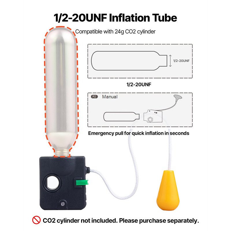 Please purchase separately and install a compatible 24g CO2 cylinder with a 1/2-20UNF threaded inflation valve.