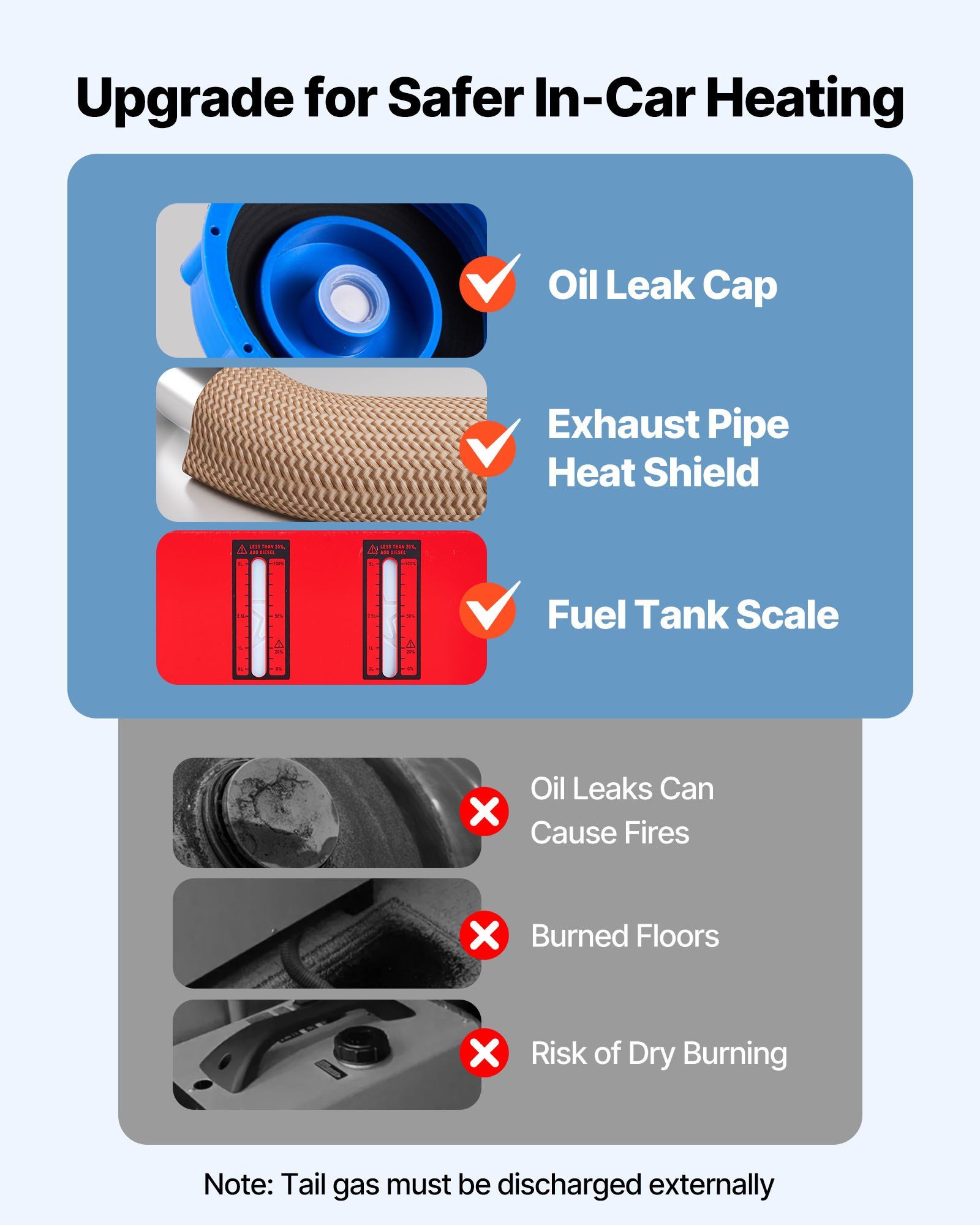 2.Upgraded Security Features: Enhanced security with a heat-insulated exhaust pipe shield to avoid burns or scorching. The leak-proof fuel cap minimizes risks on rough roads, and the fuel gauge ensures timely refueling, reducing the risk of dry burning