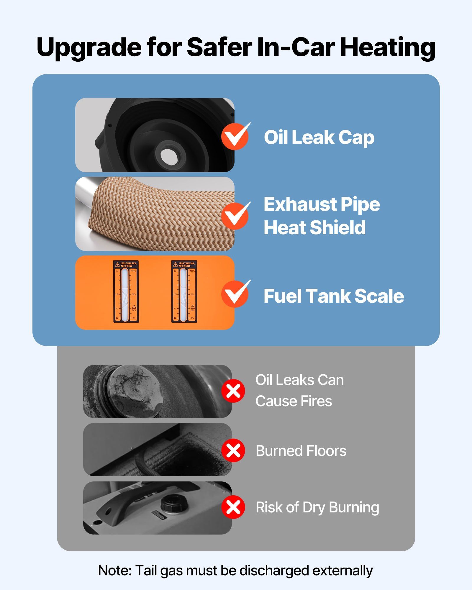 2.Upgraded Security Features: Enhanced security with a heat-insulated exhaust pipe shield to avoid burns or scorching. The leak-proof fuel cap minimizes risks on rough roads, and the fuel gauge ensures timely refueling, reducing the risk of dry burning